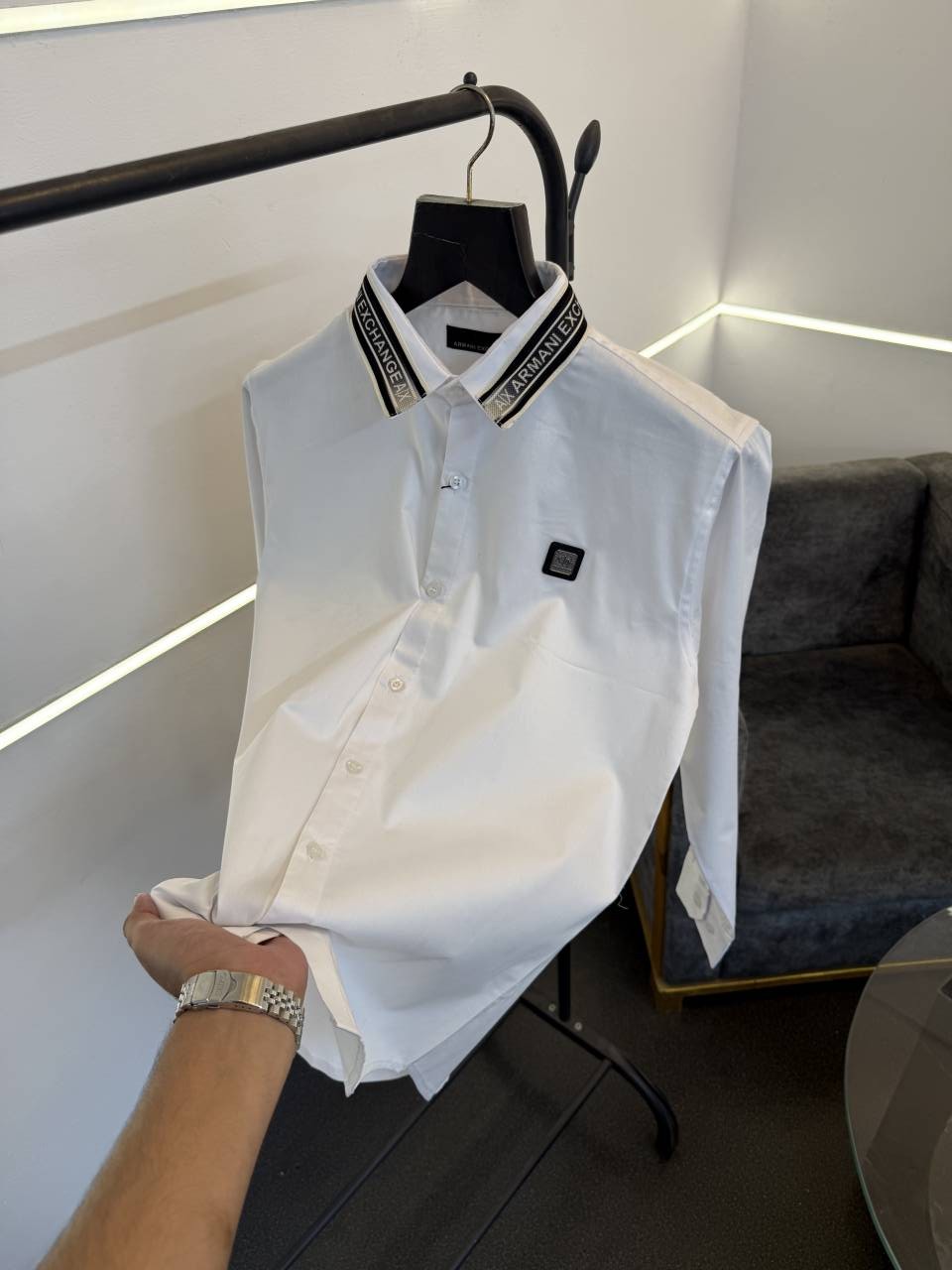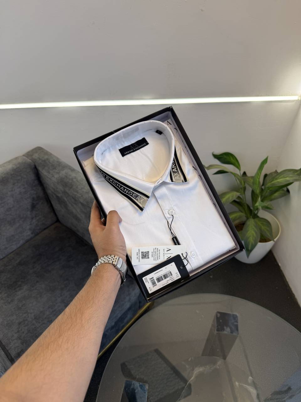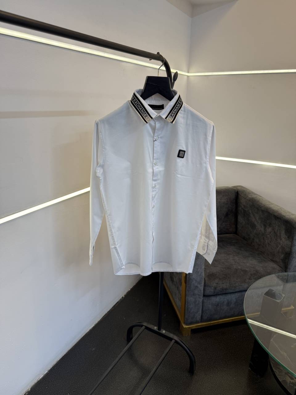 ? *Armani exchange imported box pack shirt with collar brand strip steel logo on chest with brand buttons now in stock*?