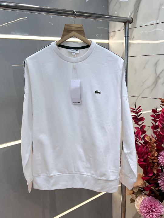 • Lacost e White Premium Imported Interlock Cotton 380 GSM Shoulder Strip and Embroidered Logo Sweatshirt 3392