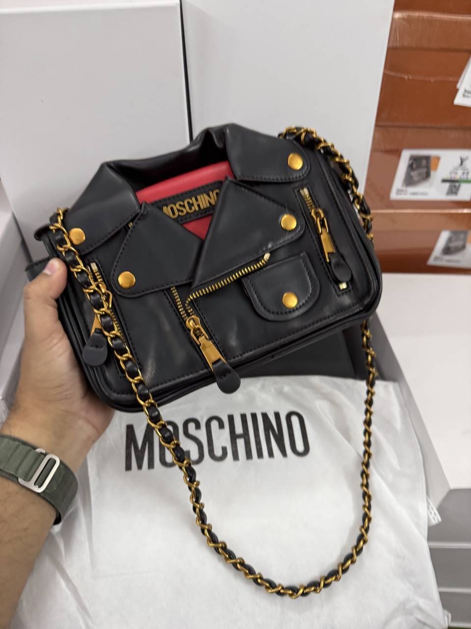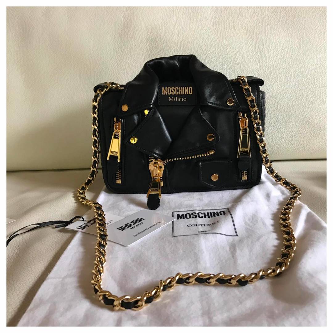 • MOSCHINO BIKER JACKET BLACK LEATHER PREMIUM WITH DUST BAG