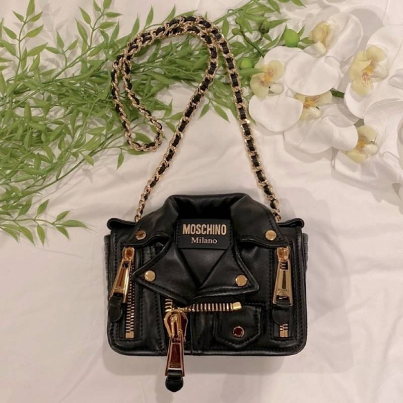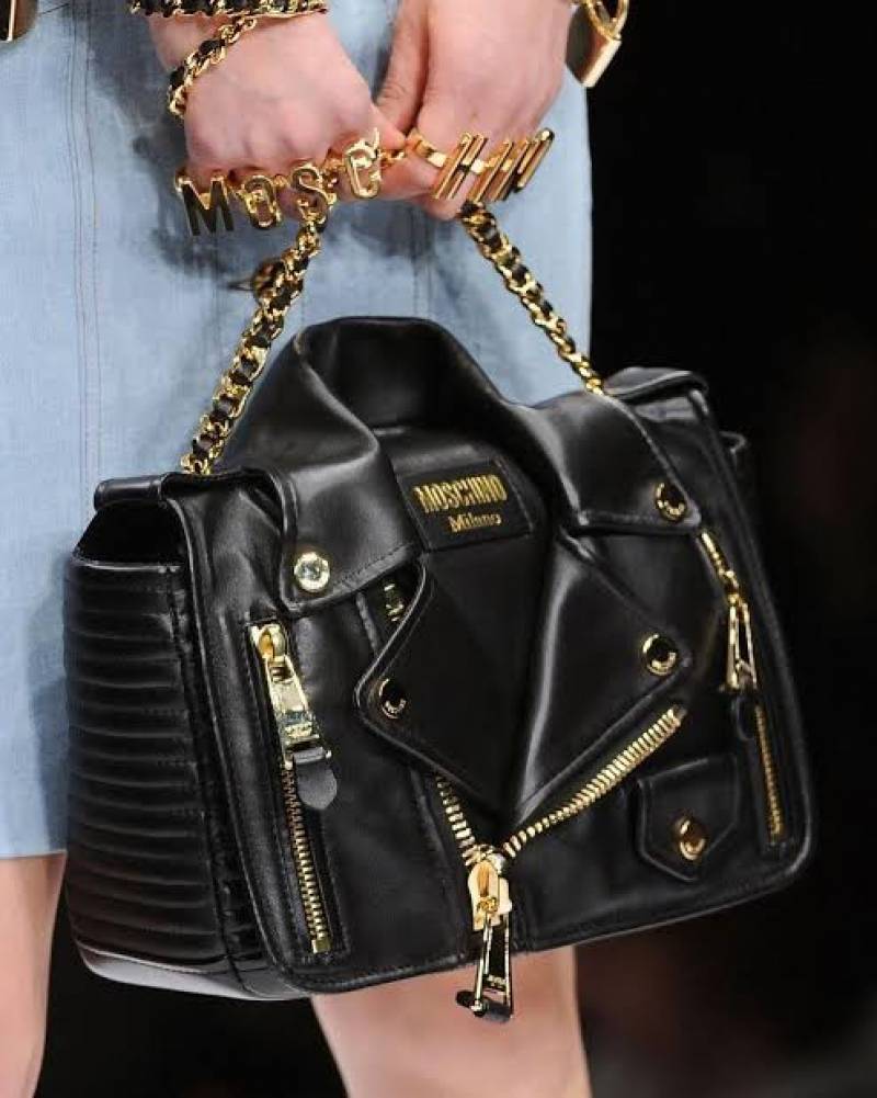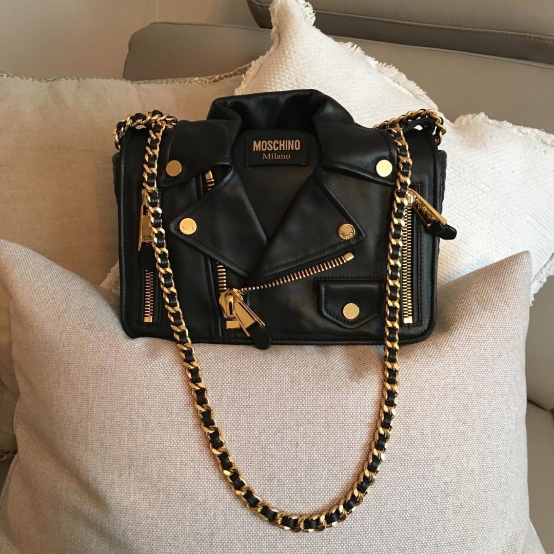 MOSCHINO BIKER JACKET BLACK LEATHER PREMIUM WITH DUST BAG