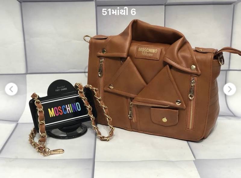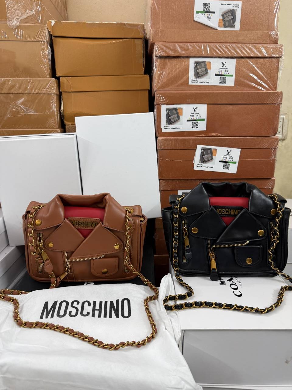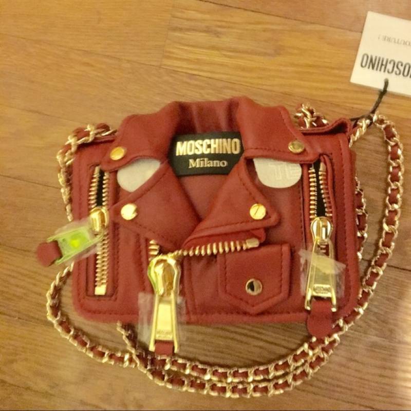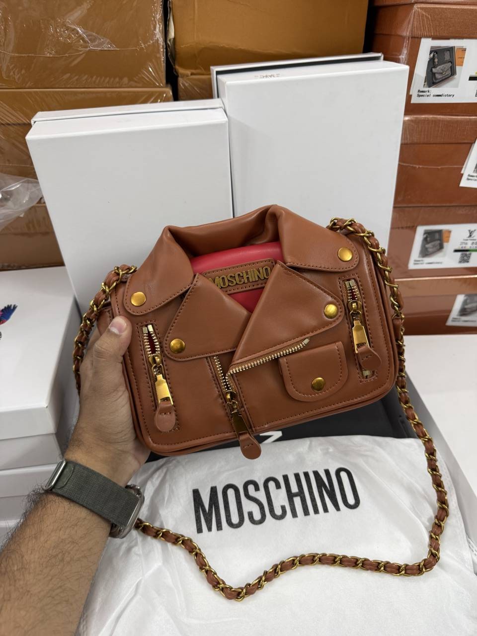 MOSCHINO BIKER JACKET BROWN LEATHER PREMIUM WITH DUST BAG